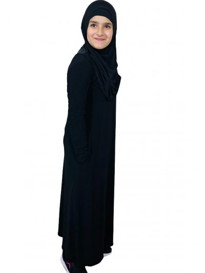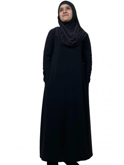 Madrassa School Top Quality ITY Jersey Girls Plain Abaya With Pockets – School Kids Black- Grey Long Sleeve Madrasa Abaya Islamic Jilbab