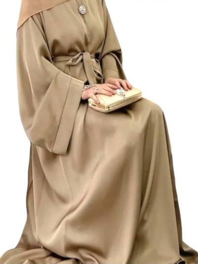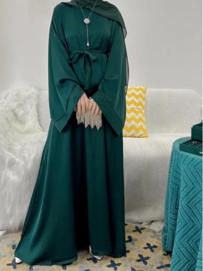 Women’s Girls Satin Abaya Flare Sleeve in 8 Colour Black Navy Blue Sizes 50″ to 58″ with Side Pocket Machine Washable Elegant Crew Neck Long Sleeve