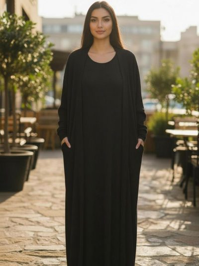 Elegant Women’s 2-Piece Maxi Rib Dress,Inner Slip Gown with Pockets
