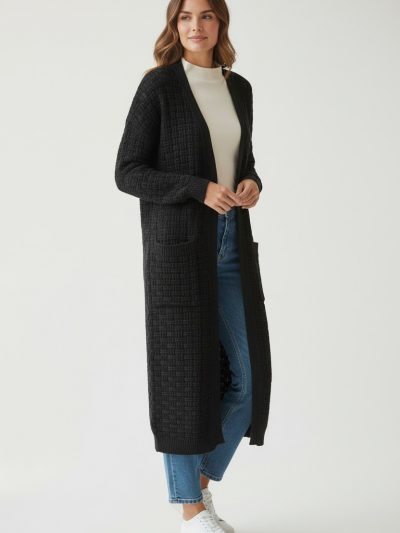 Womens Latest Cable Knitted Stylish and Cosy Acrylic Midi length Black