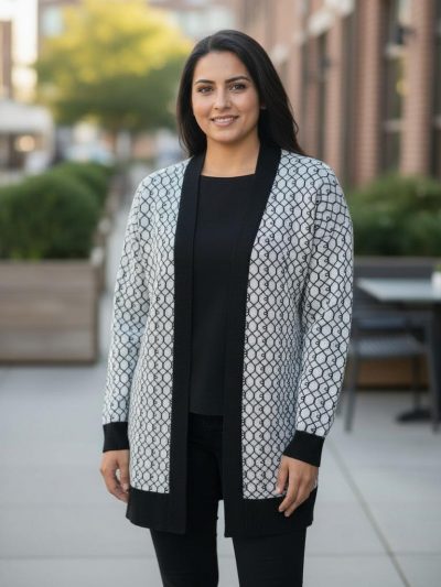 Womens RI Jacquard Pattern Stylish Cardigan Open Front Knitwear