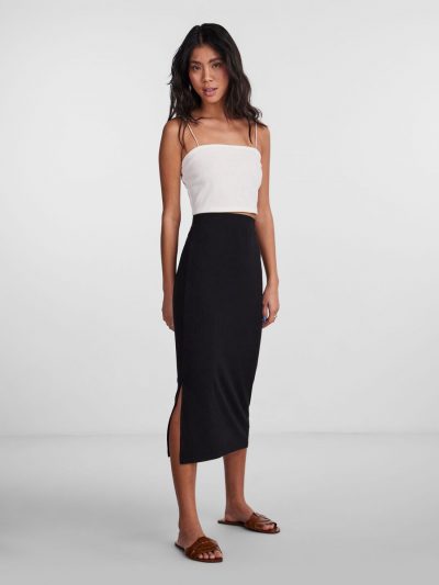 Women’s Girls Ribbed Skirt One Size ,Stretch Pencil Midi Skirt Black Mustard Comfort Womenswear Fit Medium Bottom Comfortable Elegant Summer Lady
