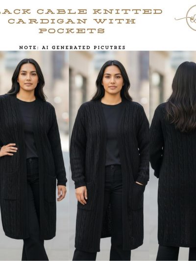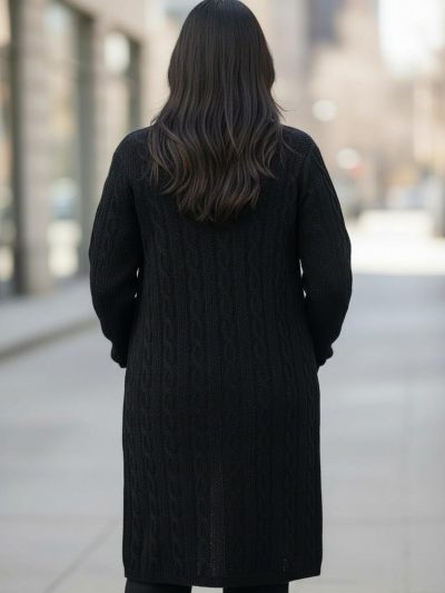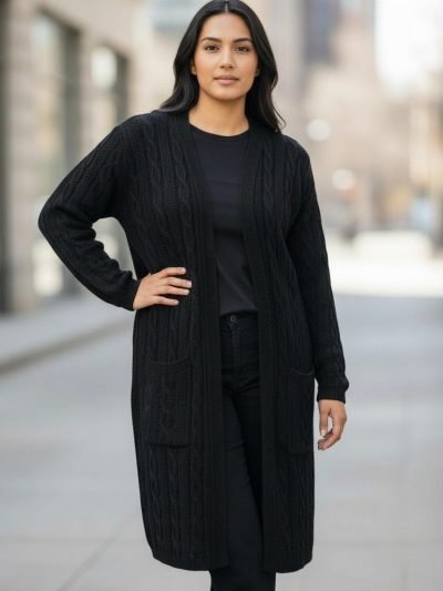 Womens Latest Cable Knitted Stylish and Cosy Acrylic Midi length Black