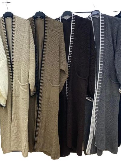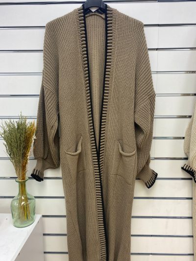 Womens Contrast Premium Knitted Printed Cardigan Pockets Midi Length