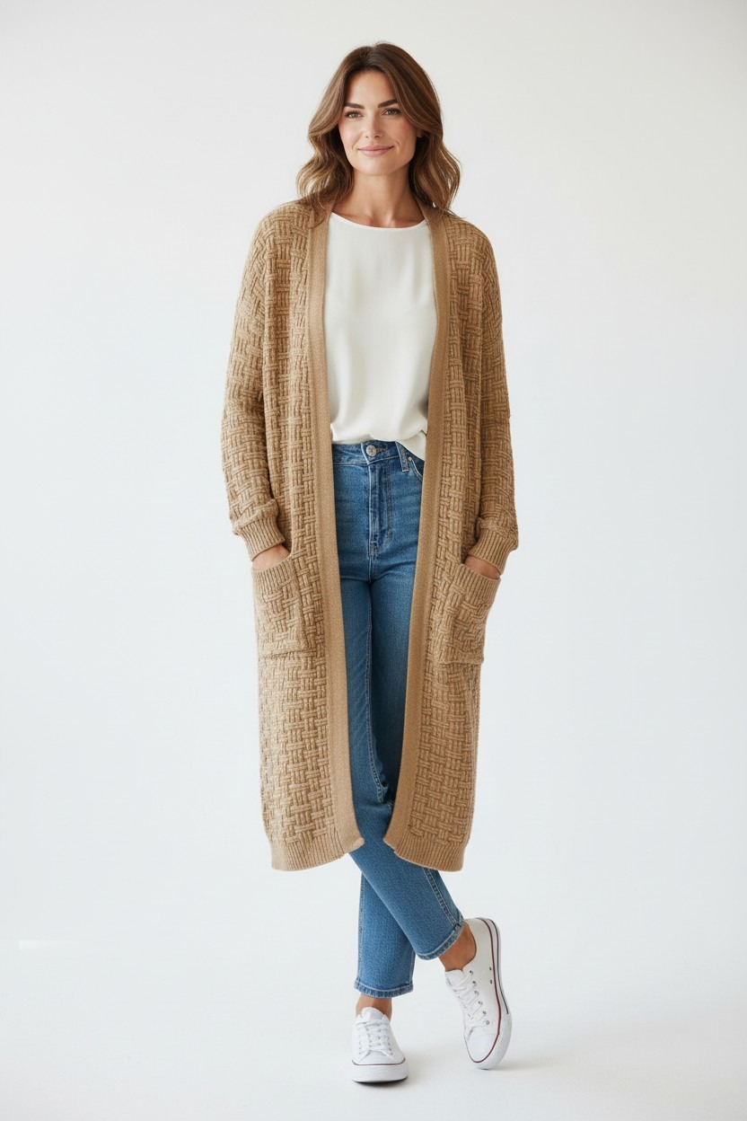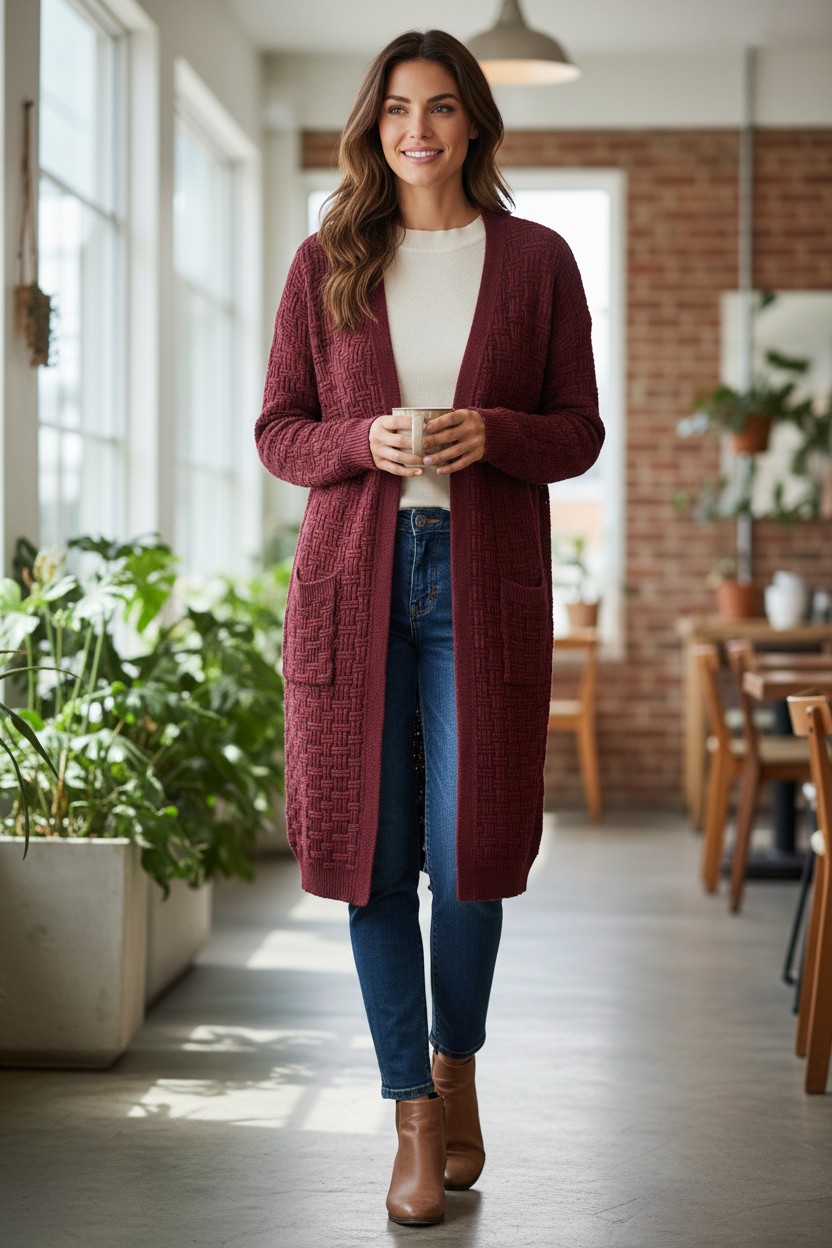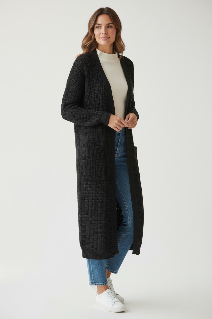 Womens Stylish Latest Cross knitted Midi Length Cardigan With Pockets,Acrylic