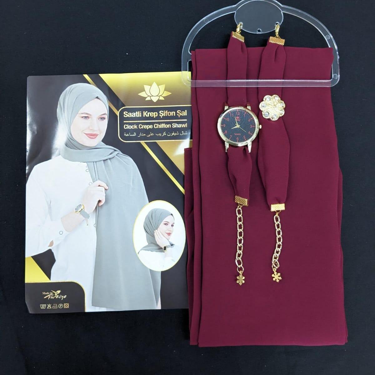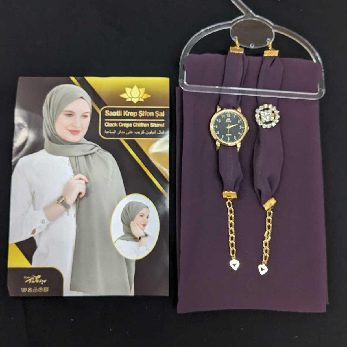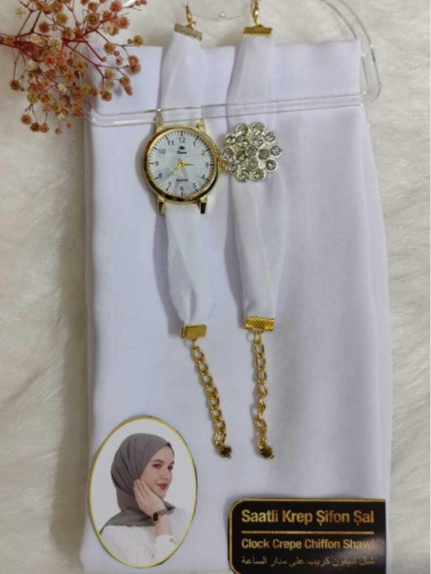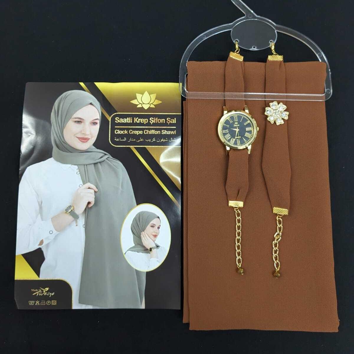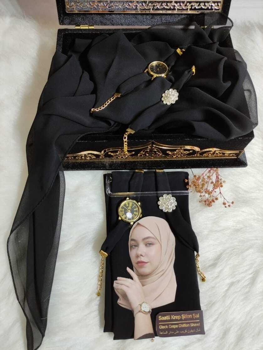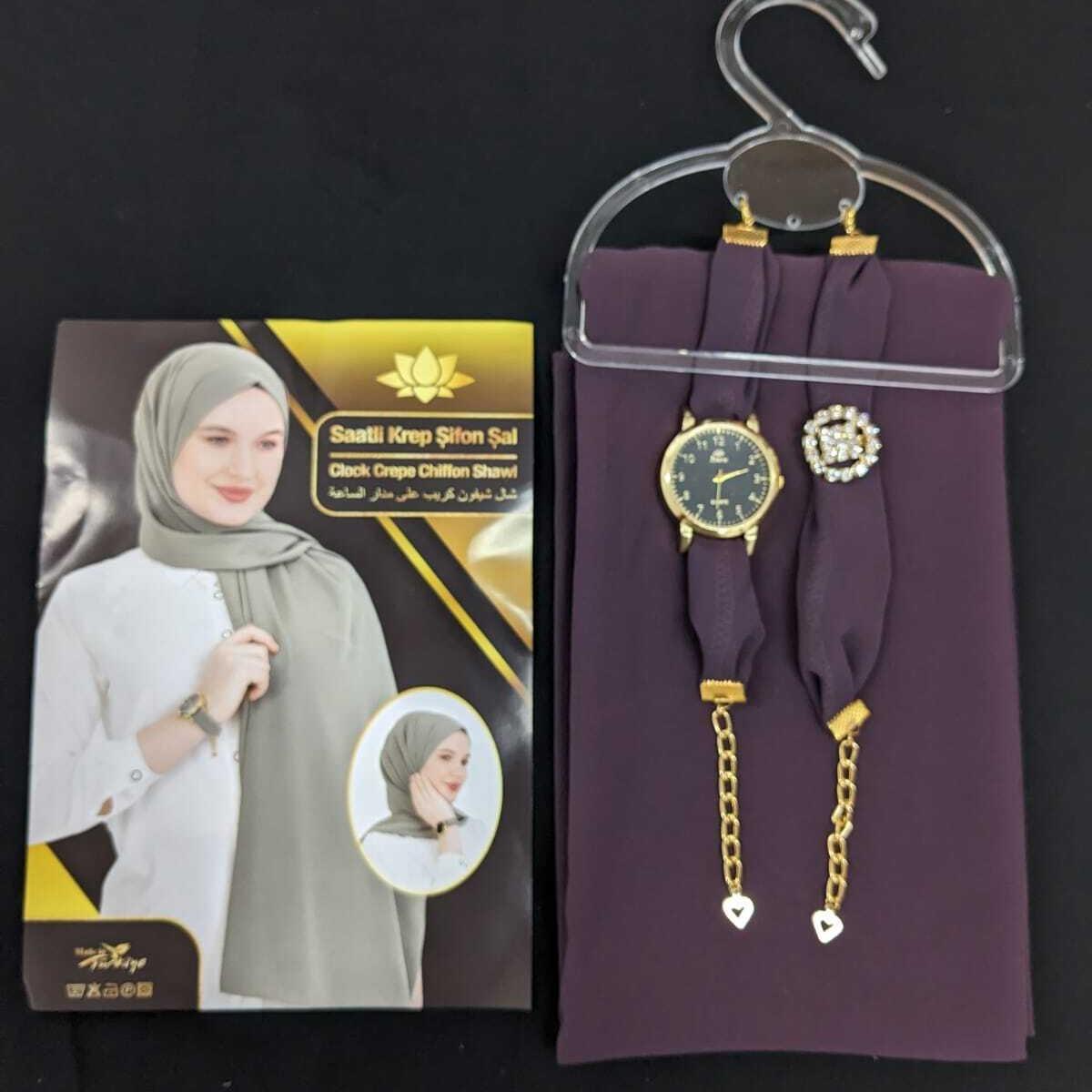✨ Discover the perfect blend of style and comfort with our Chiffon Scarf Hijab set. This exquisite piece includes a scarf, watch, and bracelet, all crafted from soft, plain maxi chiffon fabric. Ideal for those who appreciate elegance and simplicity. Perfect as a gift, it combines functionality with fashion.