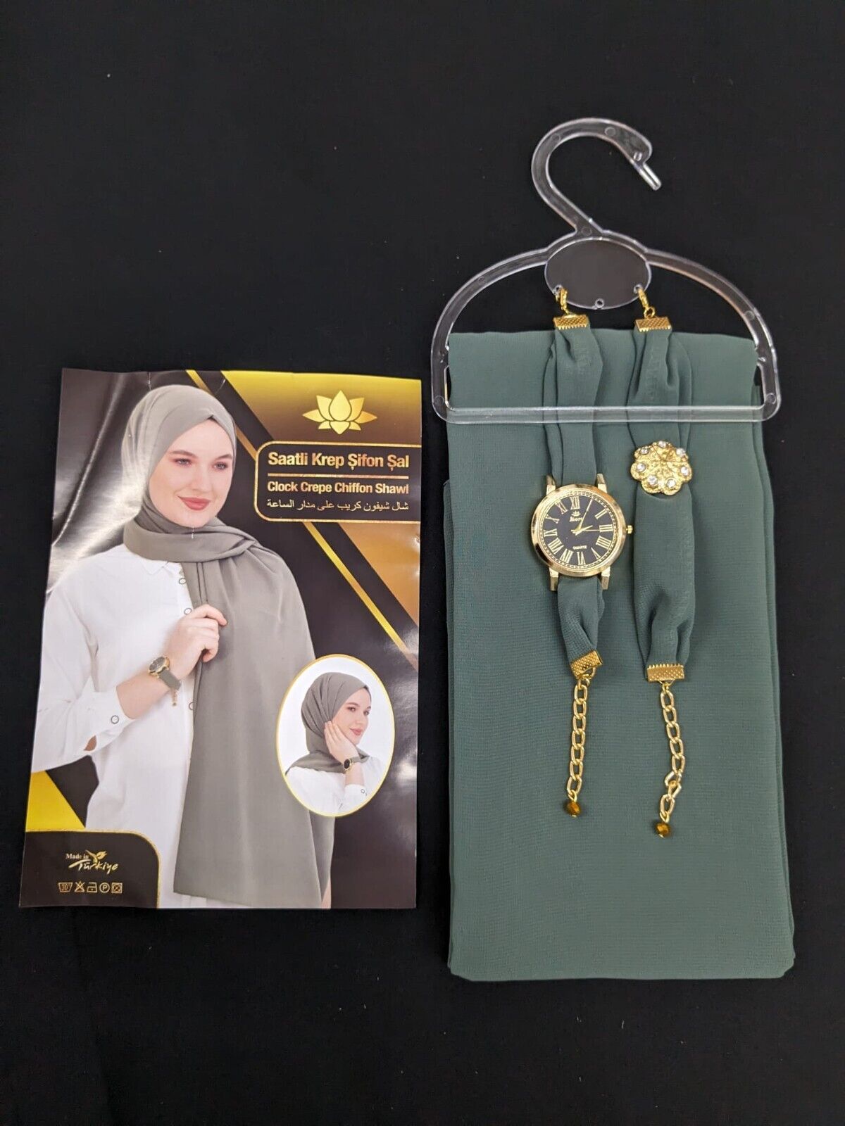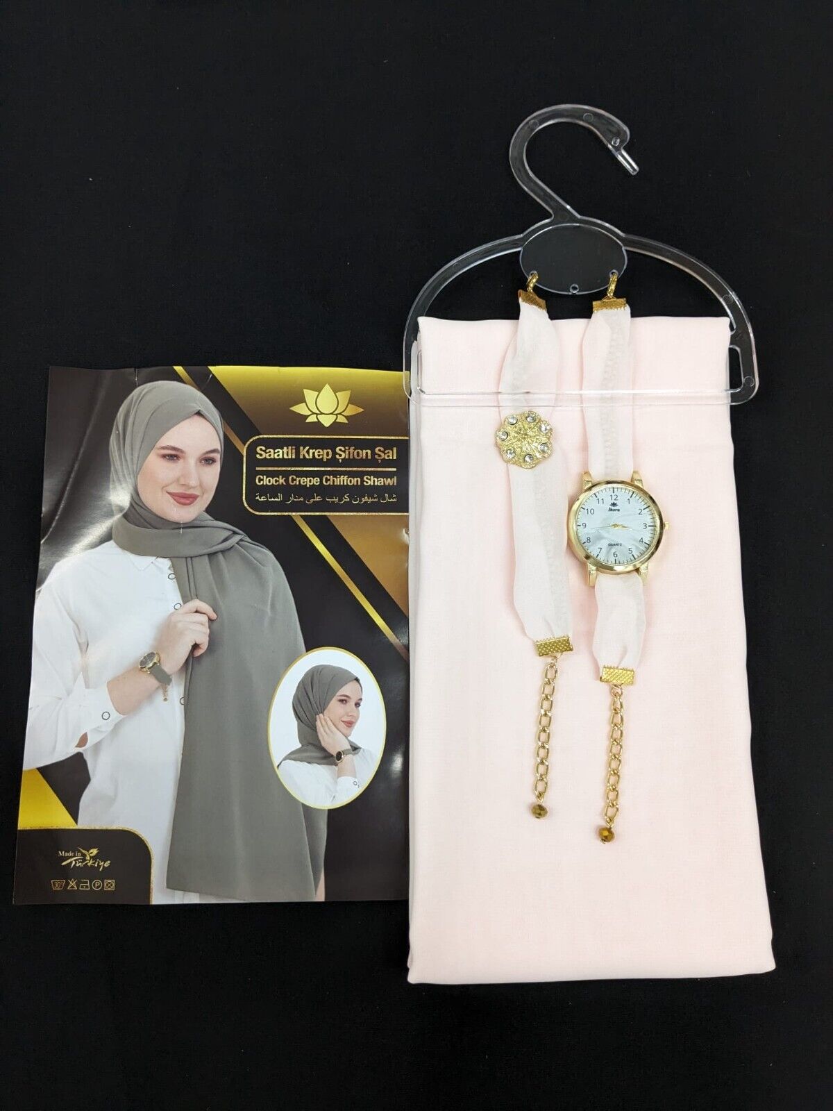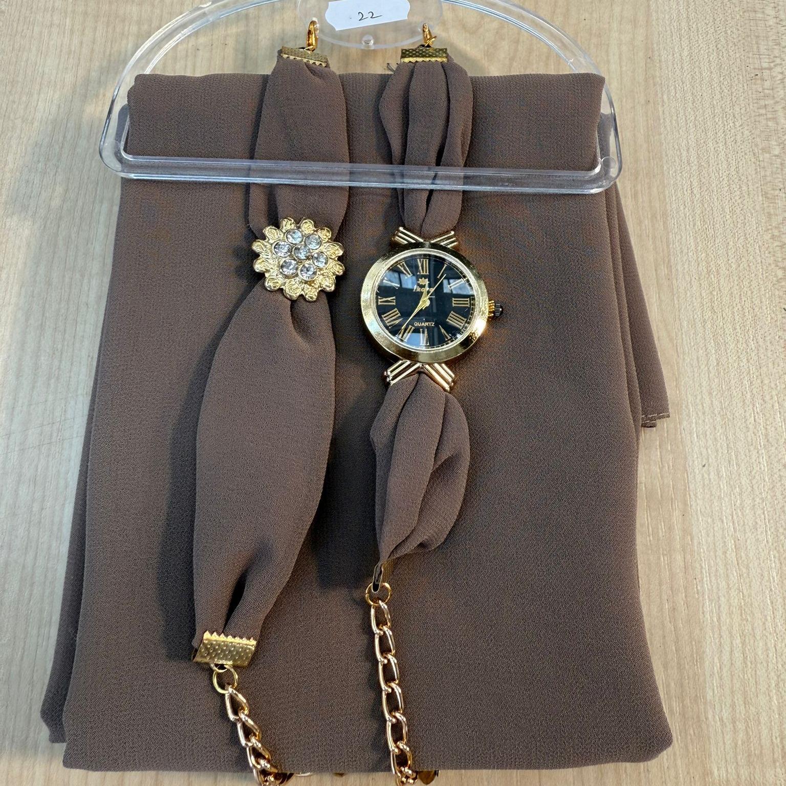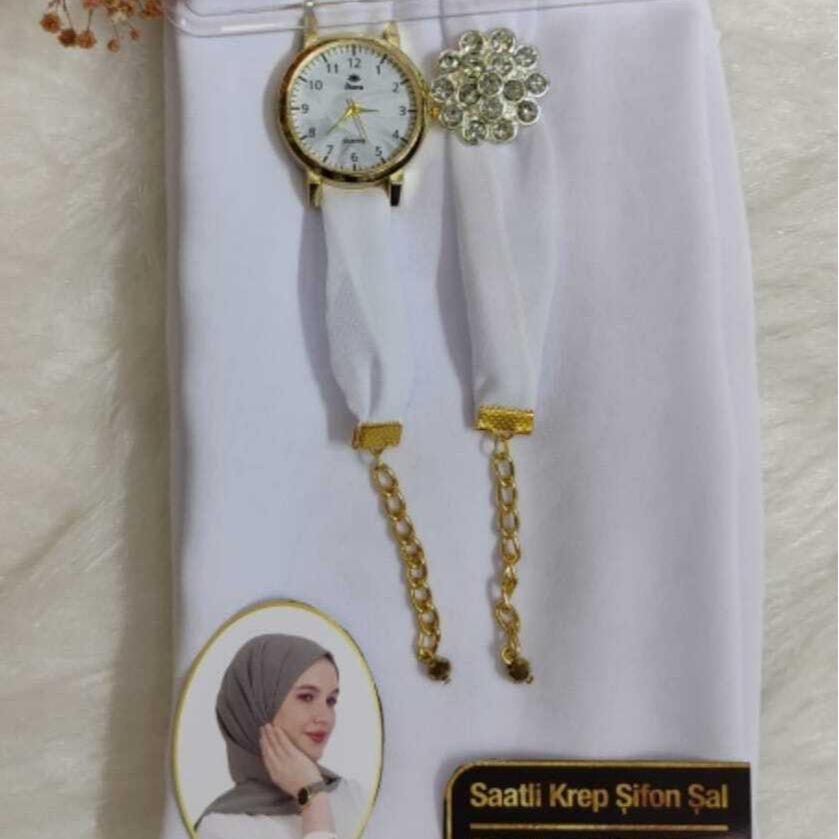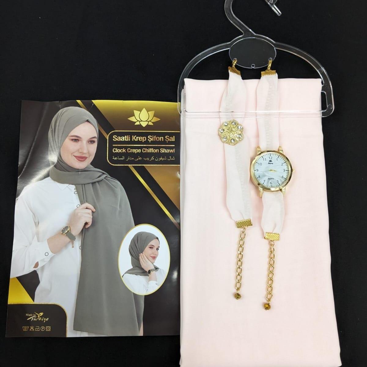 ✨ Discover the perfect blend of style and comfort with our Chiffon Scarf Hijab set. This exquisite piece includes a scarf, watch, and bracelet, all crafted from soft, plain maxi chiffon fabric. Ideal for those who appreciate elegance and simplicity. Perfect as a gift, it combines functionality with fashion.
