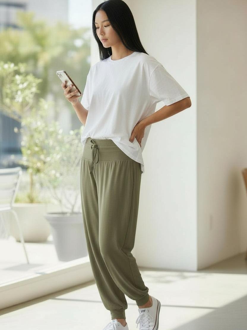Ideal for all seasons, these leggings have a medium stretch and hit at ankle length. The plain design with an adjustable strap offers a vacation-ready style. The mid-waist height and regular size type ensure a perfect fit for any occasion. Perfect for lounging at home or stepping out in casual chic fashion!