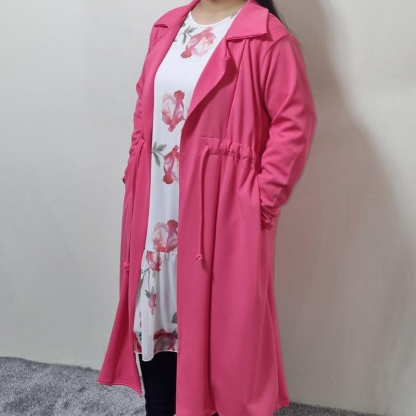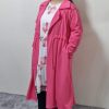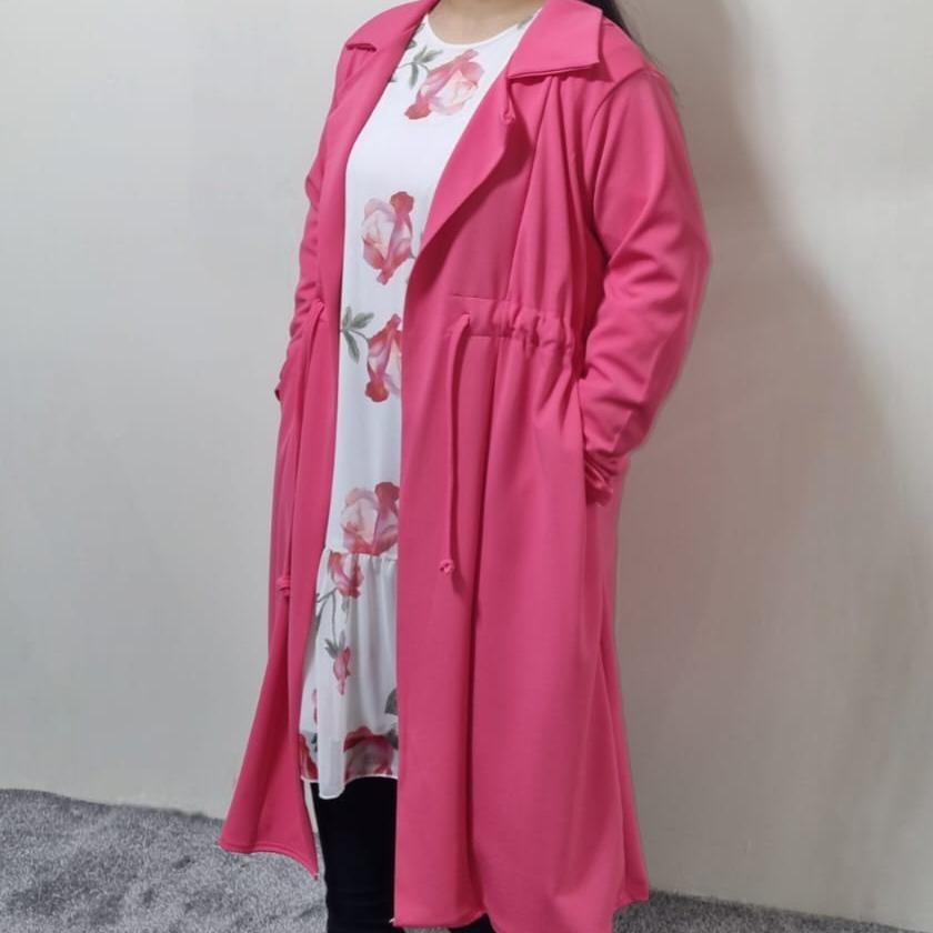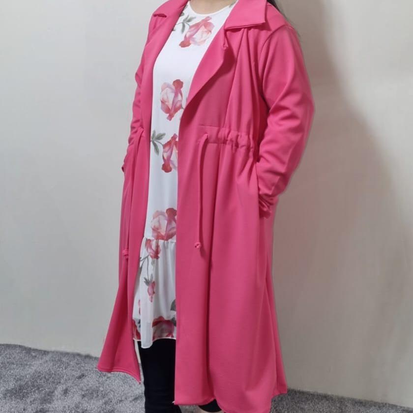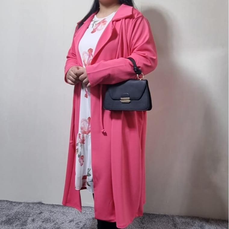 New Summer Hot Pink Women’s Girls Full Sleeve knee Length Cardigan With Belt Pockets Collar Cotton Elegant Womenswear Outfit Casual Coats Comfortable Jackets