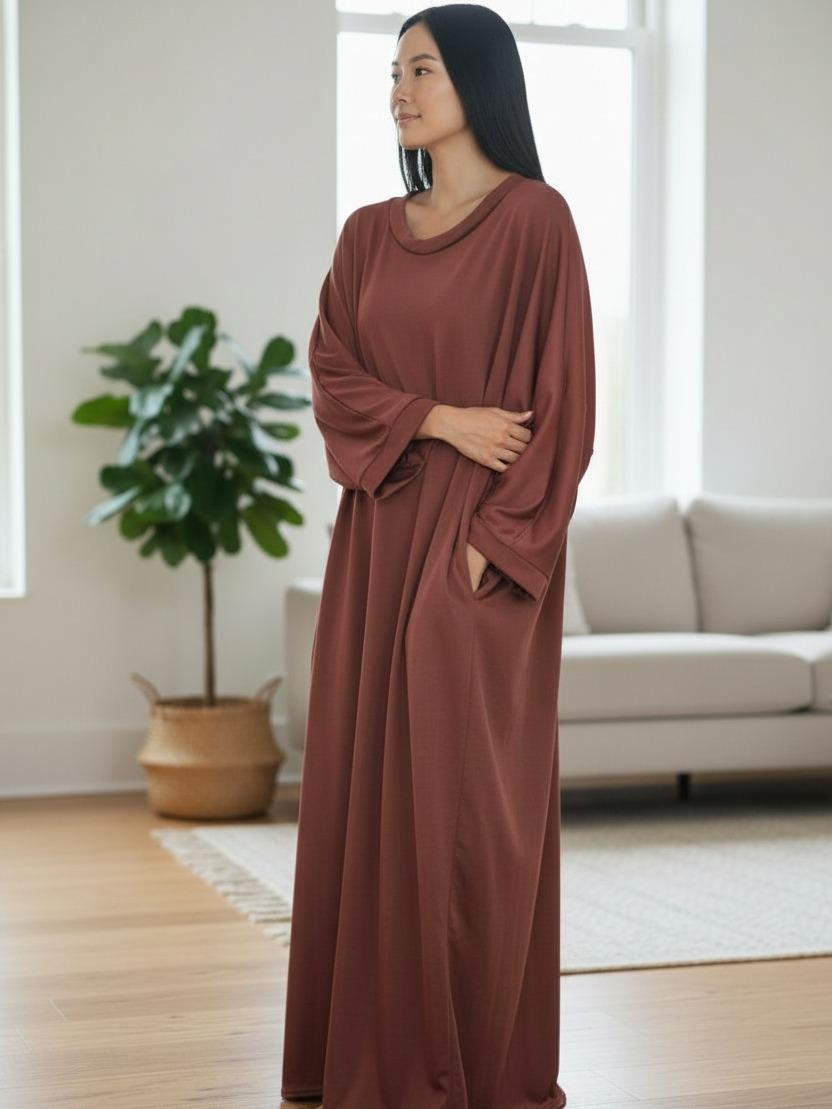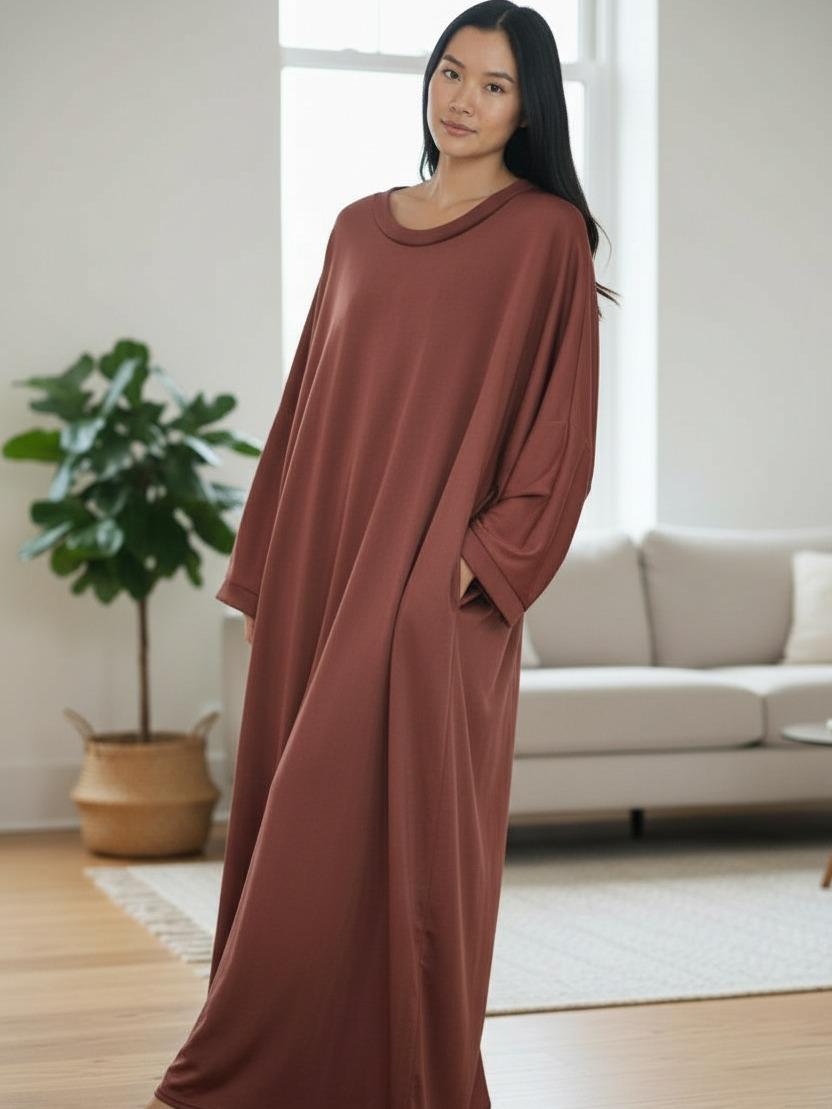 - Material & Fit: This maxi dress is made from rib fabric, offering a lose fit for comfort. It features 2 side pockets for practicality. 🌟