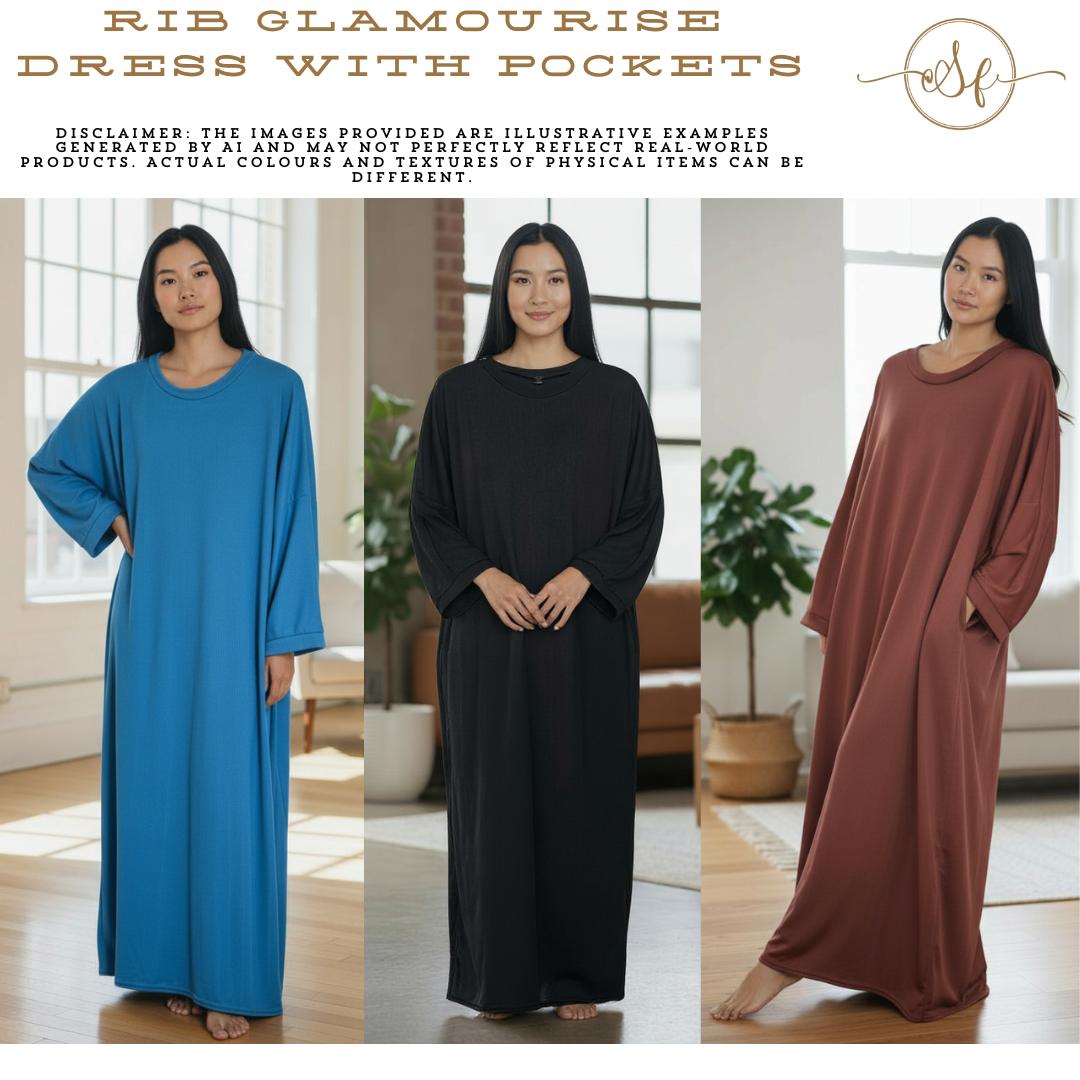 New Womens Glamourise Lose Fit Rib Maxi Dress With Pockets 52-54