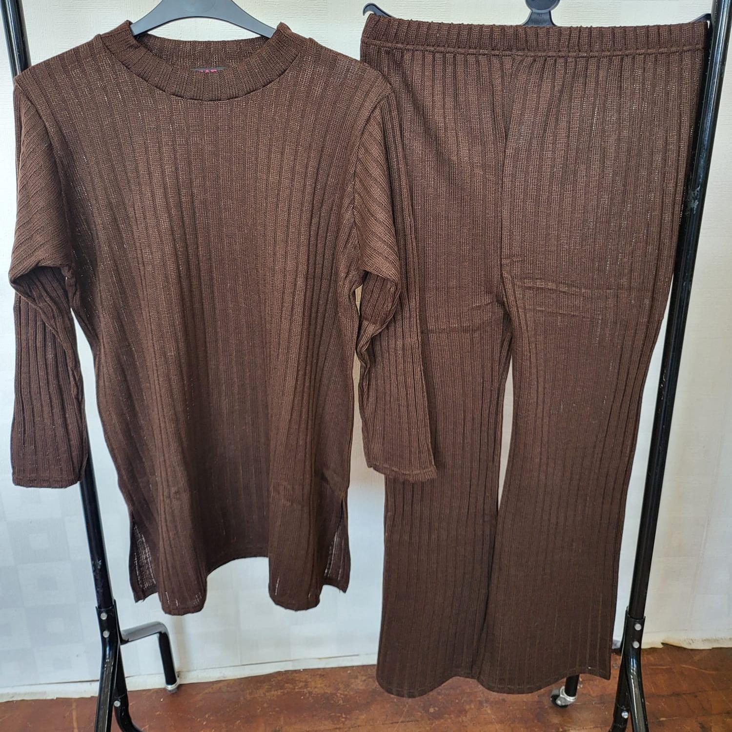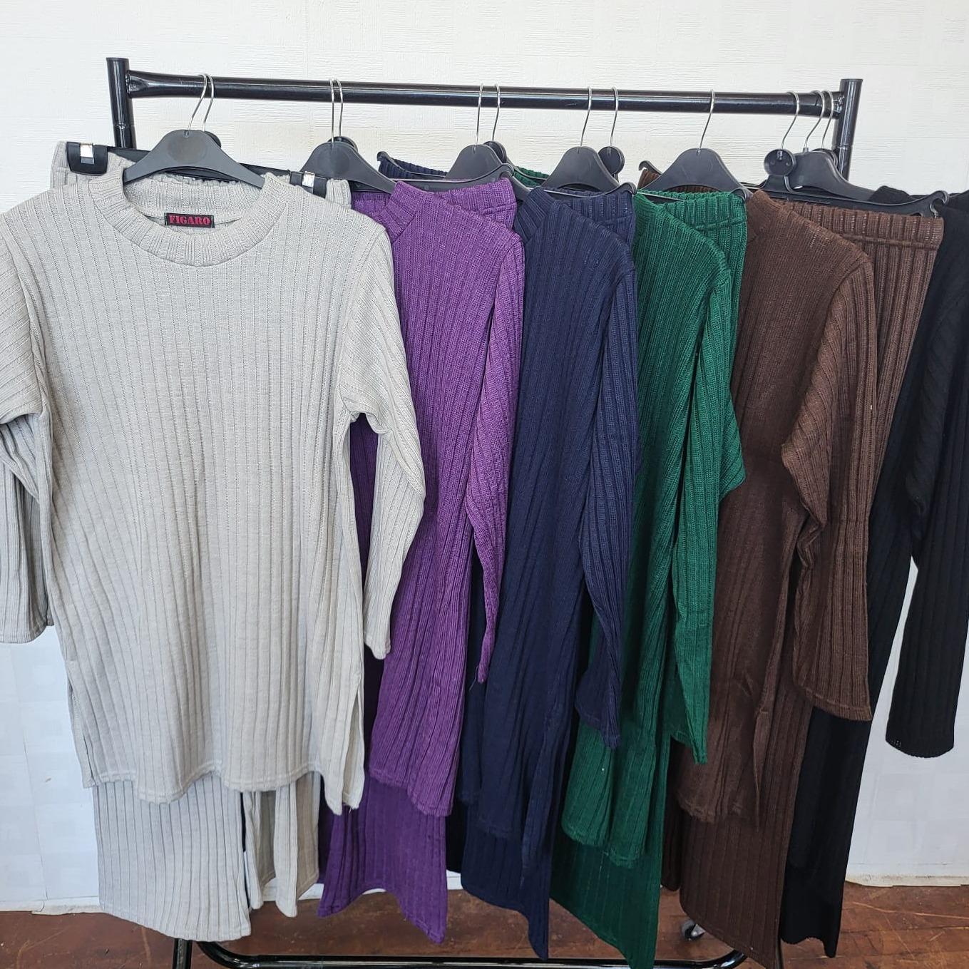 New Women’s Winter, Warm Rib Knitted Co-Ord Acrylic Knitwear Formal Comfortable Black Green Grey Navy Purple Machine Washable