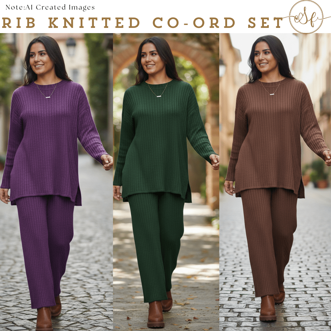 • Warm Rib Knitted Co-Ord: This new women’s winter knitwear features a warm rib knitted design, perfect for keeping you cozy during the colder months. ๐ŸŒจ๏ธ