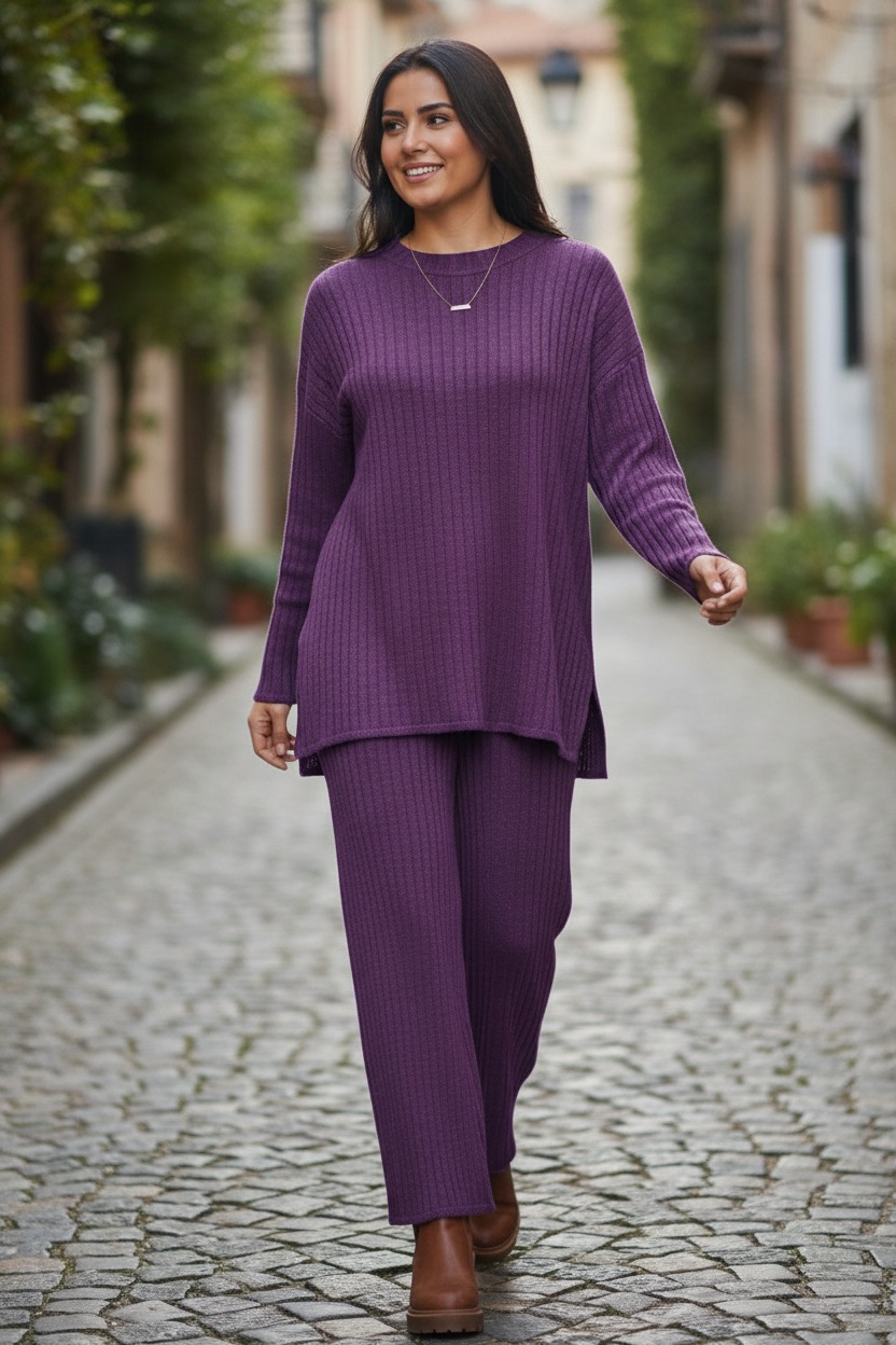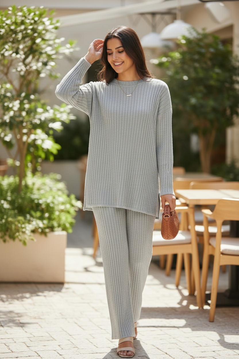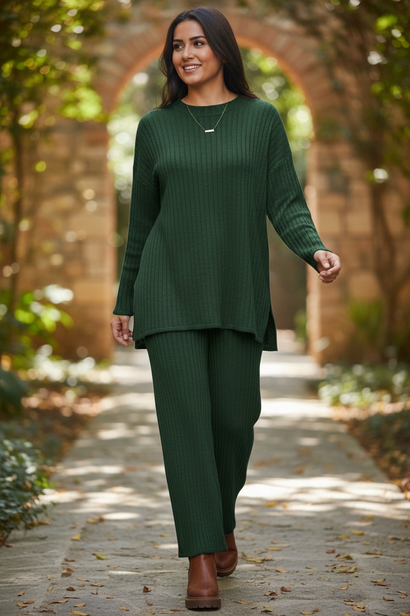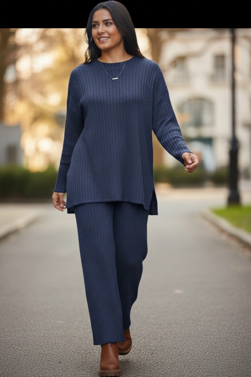 Women’s Rib Knitted Co-Ord Set Acrylic Knitwear Comfortable Stylish