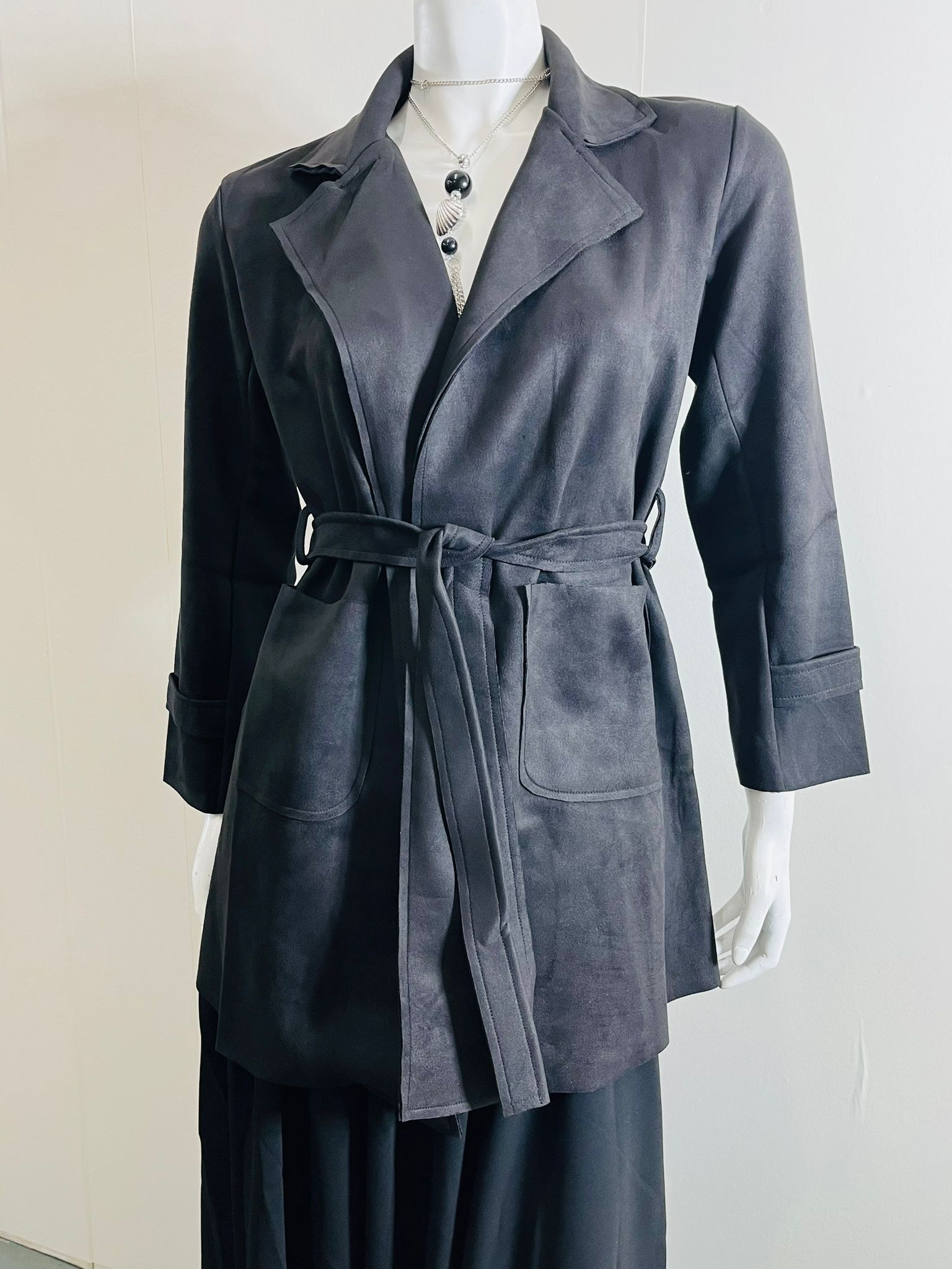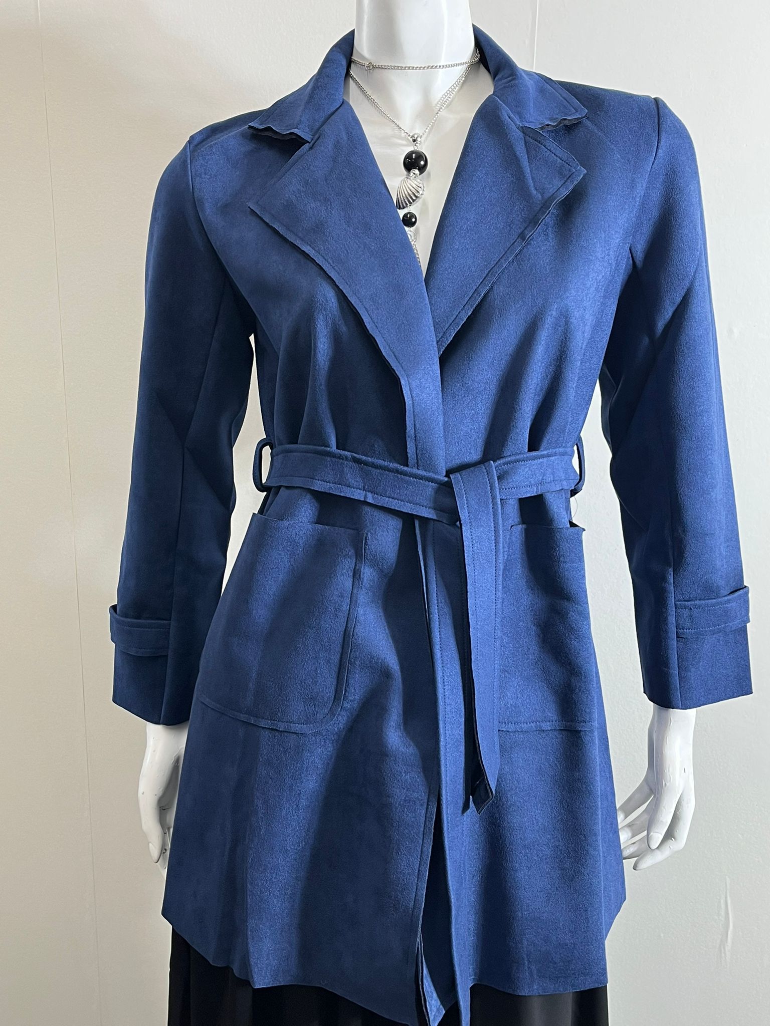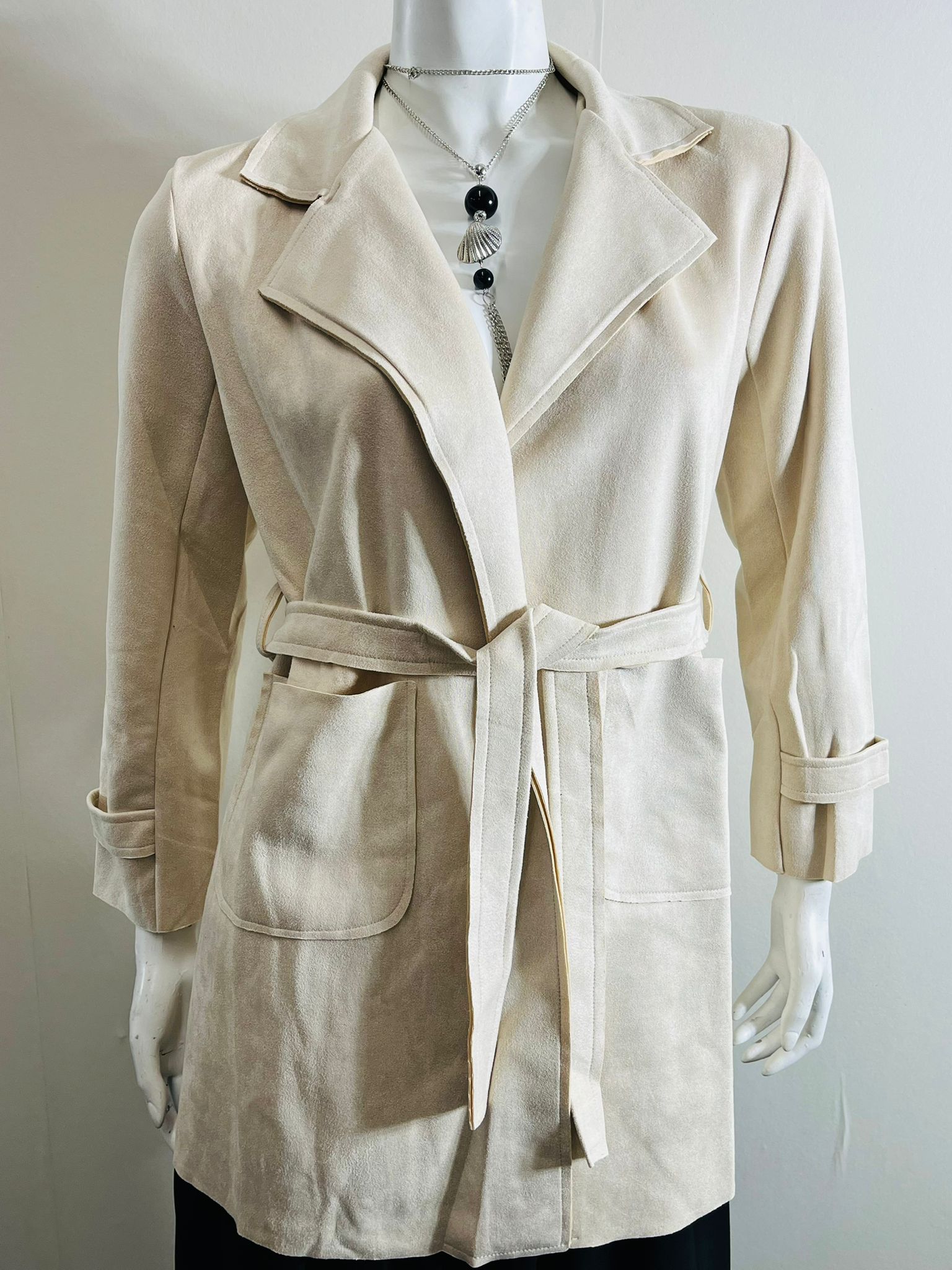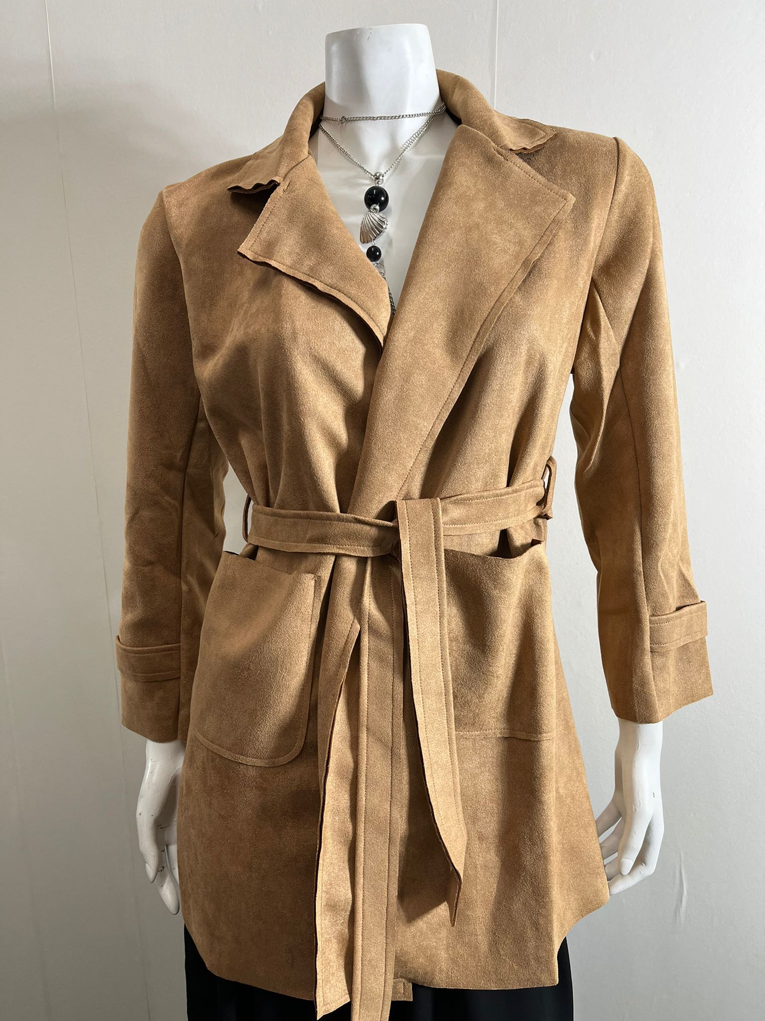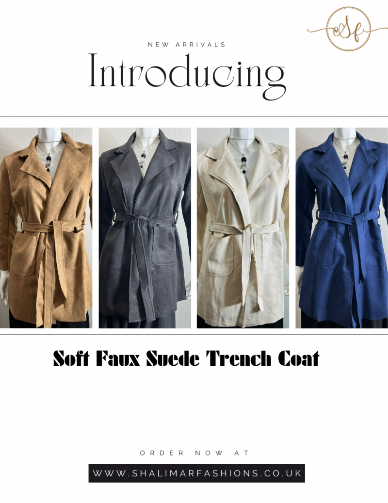 Wrap yourself in sophistication with our Soft Faux Suede Trench Coat, Short Length. This stylish piece combines the timeless appeal of a trench coat with the luxe feel of faux suede. The short length adds a modern touch, making it a versatile and chic addition to your wardrobe. Elevate your style with the perfect balance of comfort and fashion-forward flair.