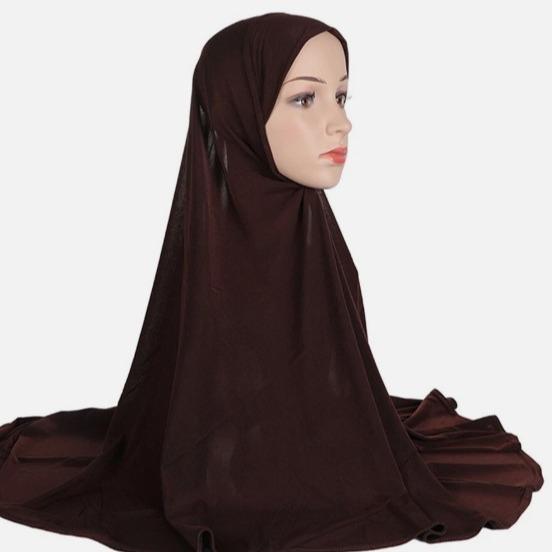 • The package contains one piece of the Girls Soft Stretch Large Size Modal Hijab. It’s a simple yet essential accessory for daily wear. The hijab is crafted to provide a comfortable fit for girls, aligning with their needs for practicality and style.