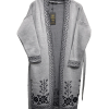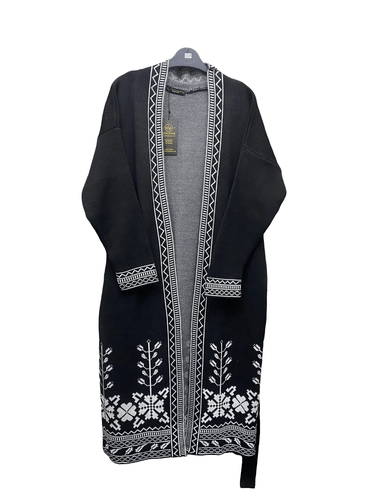 - Design: Printed Knitted Long Cardigan in Black & White or Grey & Black, with a belt for added elegance.