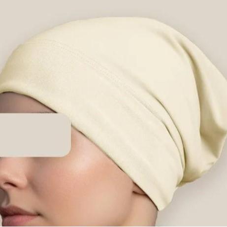 The under scarf cap is a practical and convenient way to cover the head and neck while still allowing for ventilation and movement. It is available in multiple colors, including black, white, off-white, and beige, allowing for personalization and coordination with different outfits.