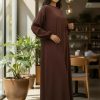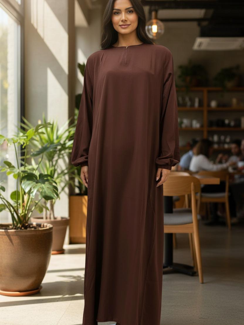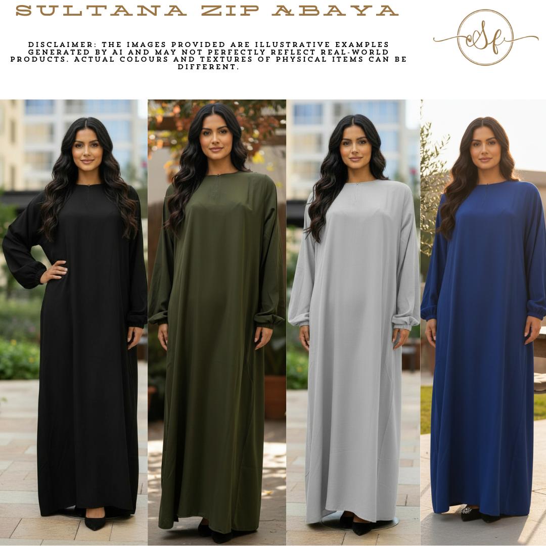 Women’s Sultana Zip Abaya Long Dress With 2 Side Pockets Woolpeach Fabric Soft