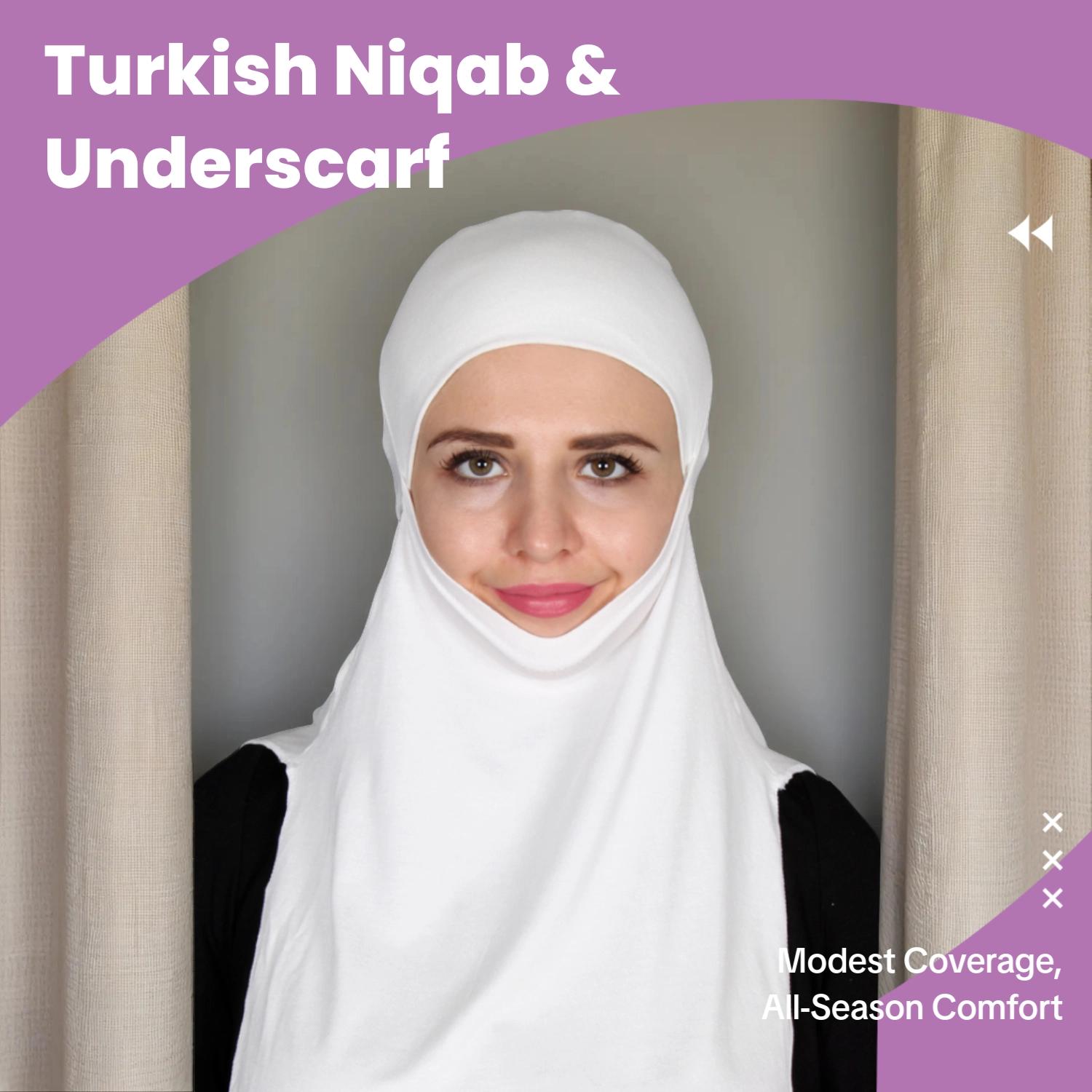 This product is a Turkish Niqab and an underscarf cap for women. It can be used as a ninja hijab, neck cover, ninja bonnet, and as an under scarf hijab bone cap. The Turkish Niqab is designed to provide full coverage and protection for the face and neck, making it a practical choice for women who want to cover their face and neck while maintaining a modest and modest appearance. The underscarf cap is a practical and versatile accessory that can be used as a ninja hijab, neck cover, ninja bonnet, and as an under scarf hijab bone cap.