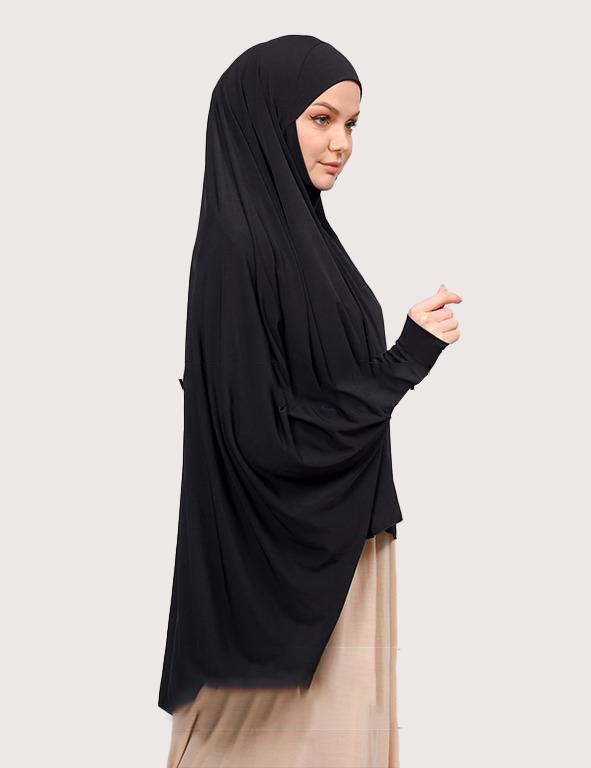 Introducing our cotton 5XL hijab khimar with sleeves, made in Turkey with the best quality materials. This product is available in black and white colors, making it a versatile addition to your wardrobe. The cotton material used in this product is breathable and comfortable to wear, making it ideal for summer.