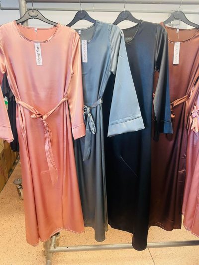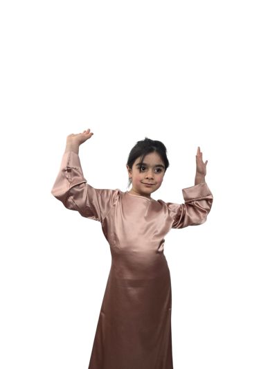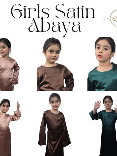 Girls Satin Long Dress Children’ Kids Flare Sleeve Dress Ramadan Abaya, Jilbab, Black, Pink,Brown,Green